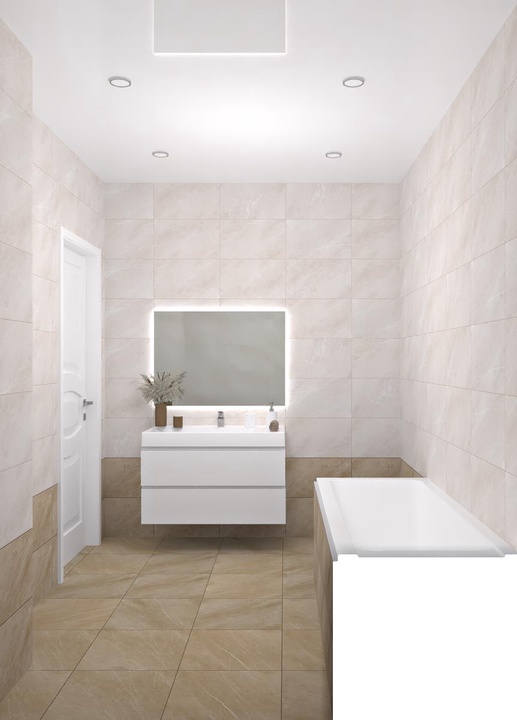Ванная комната облицованная двумя видами керамической плитки разного цвета российского производителя Gracia Ceramica Коллекция Tibet.
