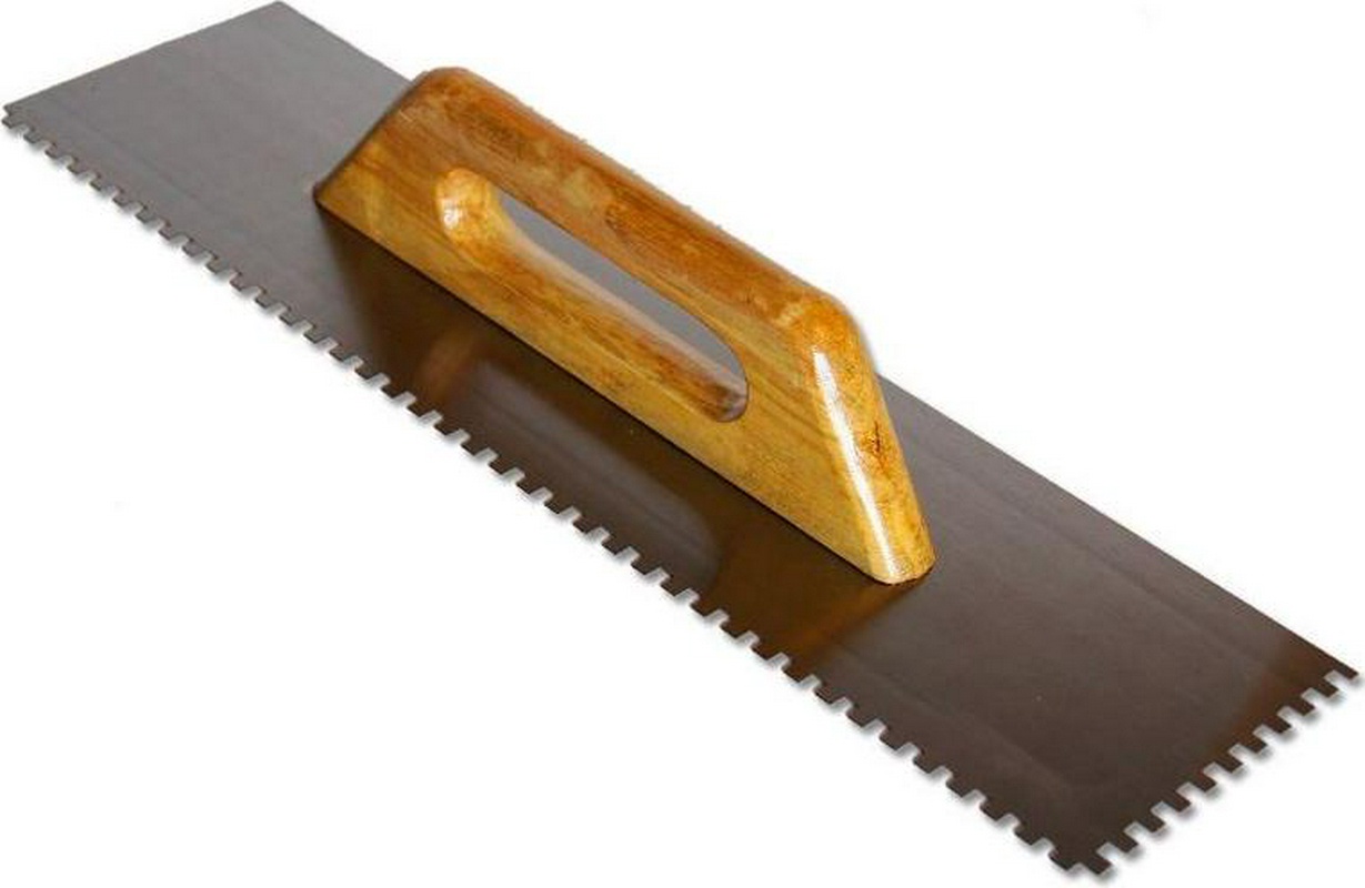 Укладка плитки Гладилка зубчатая 130 х 480 мм., зуб 12х12 мм. Нерж,сталь, дерев. ручка
