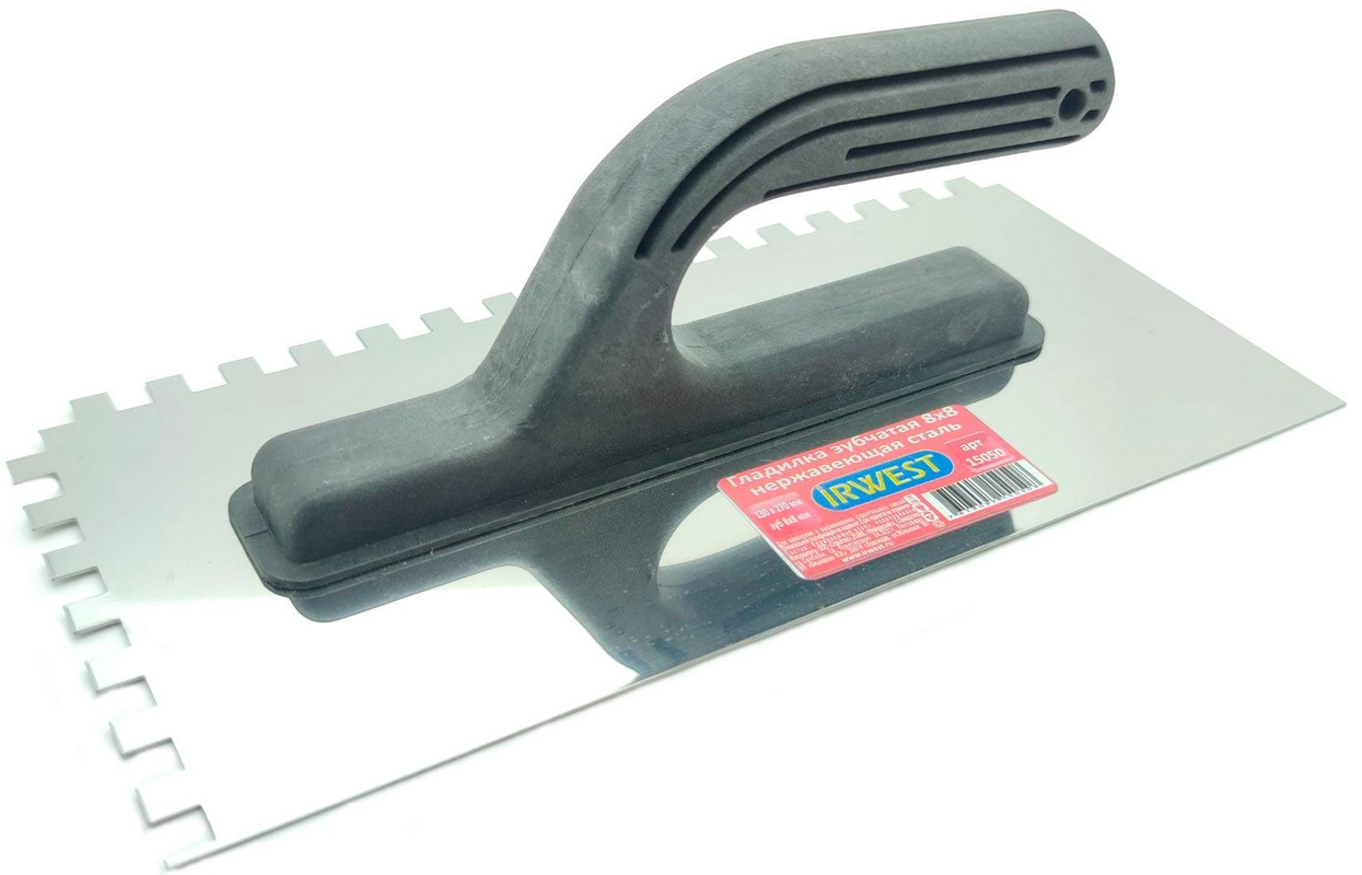 Укладка плитки Гладилка зубчатая 130 х 270 мм., зуб 12х12 мм. Нержавеющая сталь