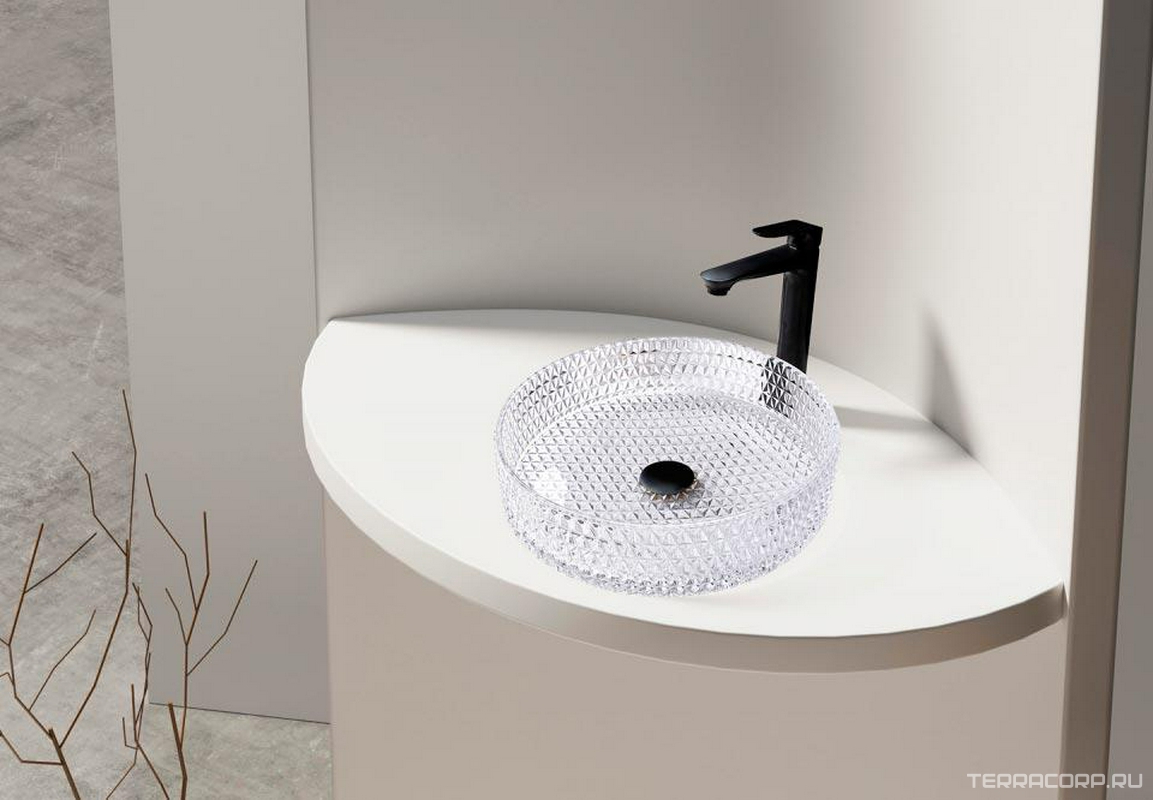 Раковина накладная на столешницу, круглая, 395х395хh105мм, без отв.д/смесит., без перелива, (стекло прозрачное), ZZ Abber Glas AK2301