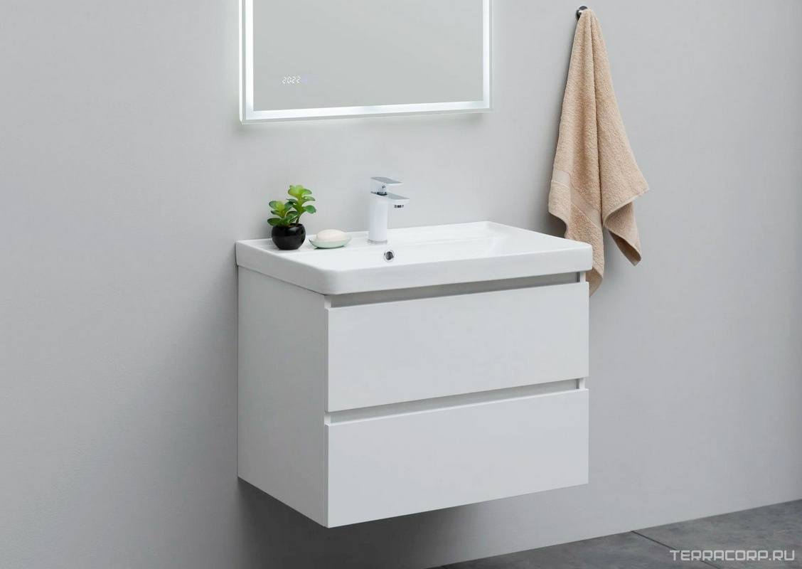 Тумба подвесная Вега 70 см с 2 выдвижных ящиками, без раковины арт.301804, цвет белый