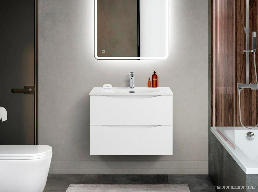 База под раковину подвесная с 2 выкатными ящиками, 796x390x500мм, без раковины, (цв.Bianco Opaco), Marino-Cer-Mini ZZ