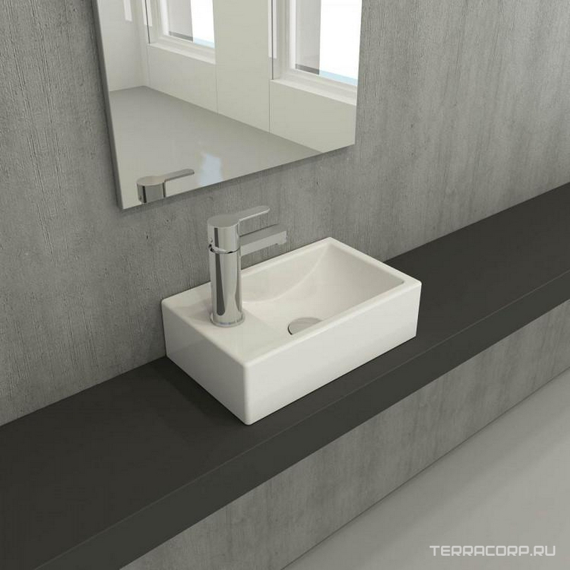 Раковина 37х23 cм, подвесная/накладная, отверстие под смеситель СЛЕВА , цв.белый KL Раковина 37х23 cм, подвесная/накладная, отверстие под смеситель СЛЕВА , цв.белый KL