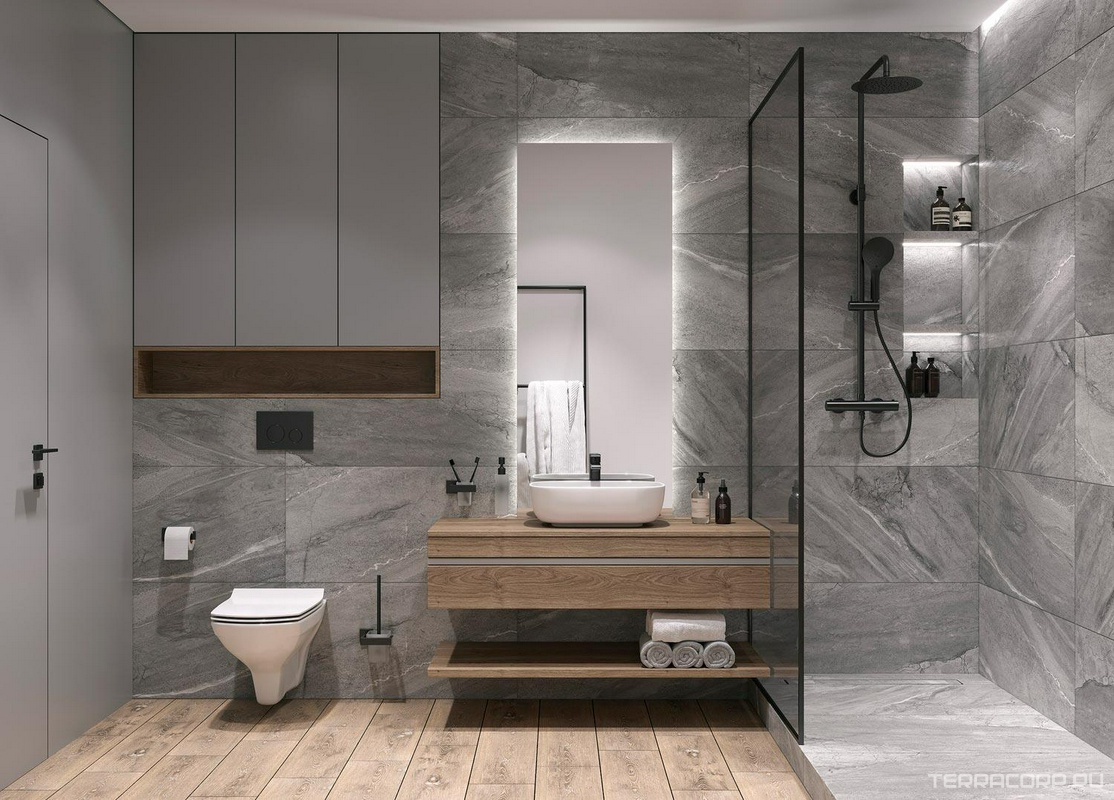 Глаз. керамогранит Castello серый рельеф ректификат 44,8x89,8