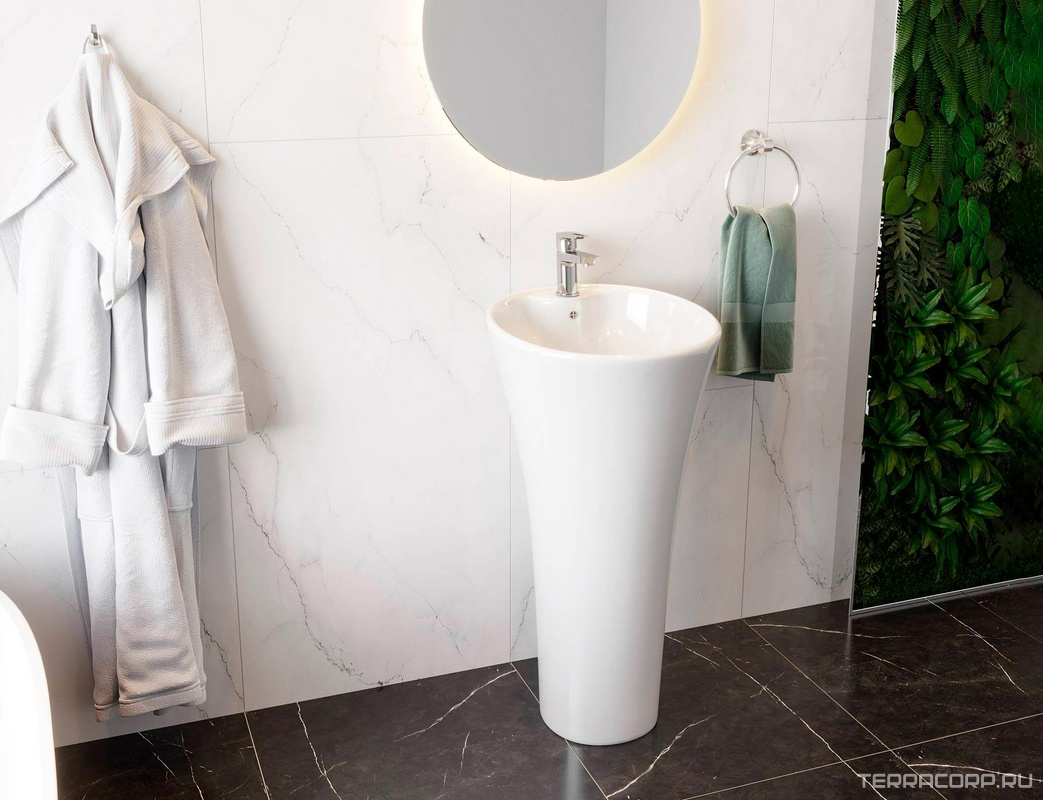 Раковина 450х450хh880мм, напольная, круглая, c отв.д/смес и переливом, крепеж в компл., (керамика цв.белый), Adelina ZZ