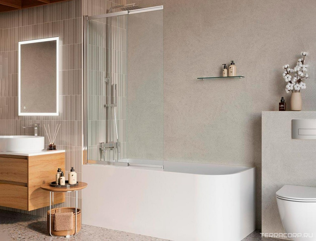 Штора на ванну выдвижная, 604-1015хh1450мм, крепление слева/справа, (стекло прозр. 6мм, фурнит. цв.хром), Luce ZZ