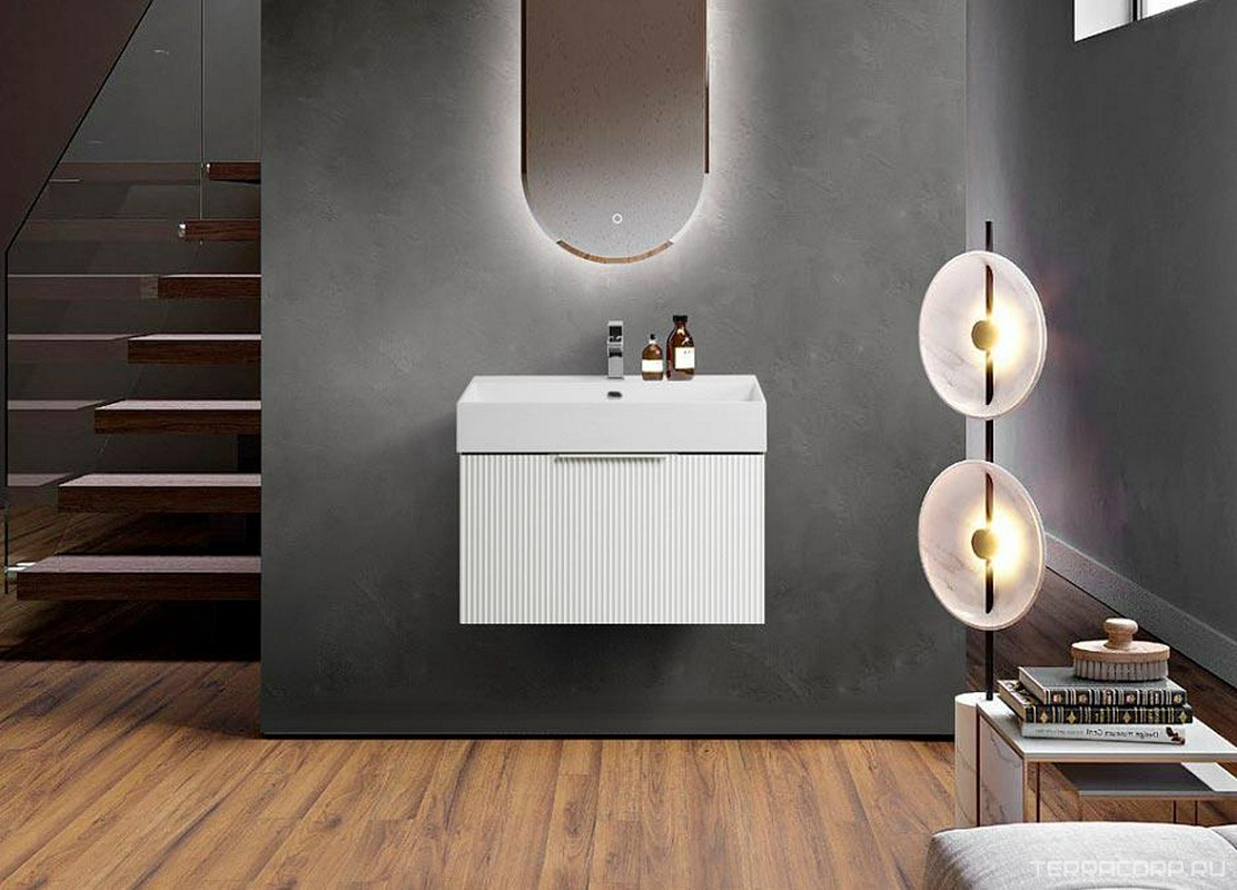 База под раковину подвесная с выдвиж.ящиком и внутренним ящиком, 70х44x43см, без раковины, (цв.Bianco opaco), Premium ZZ