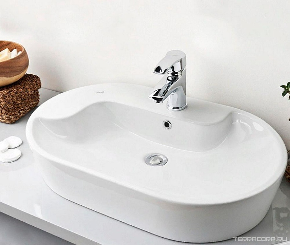 Раковина-чаша накладная Topic 45x70 см, c отверстием для смесителя, белая KL