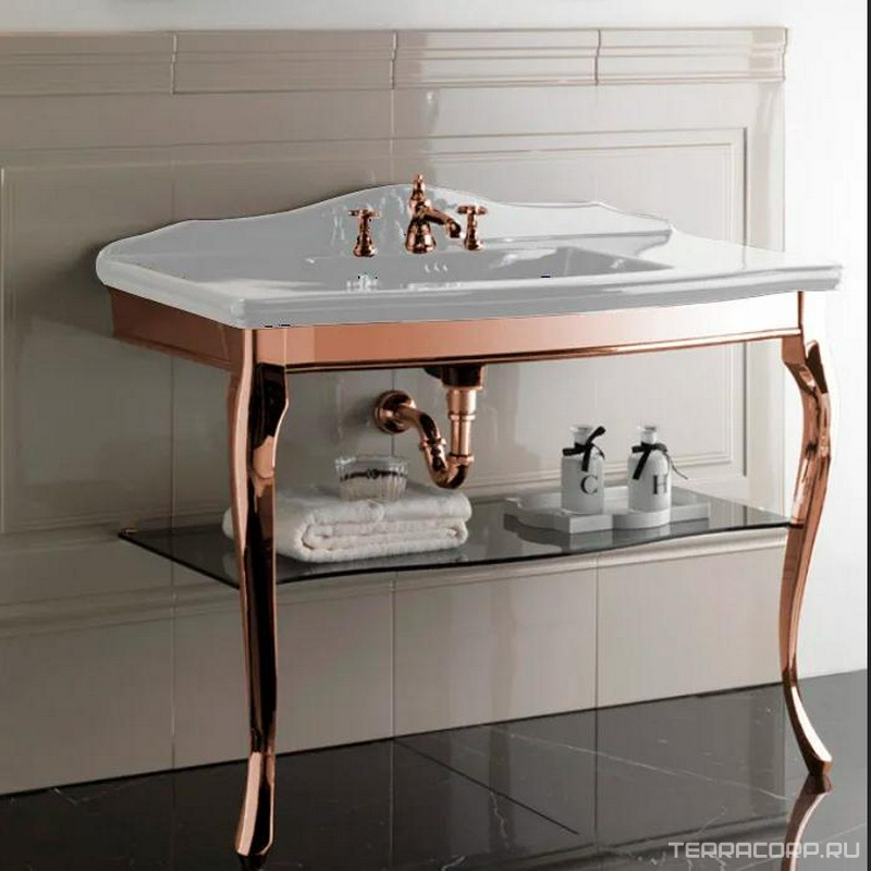 Консоль металл. 1080хh845х582мм, со столешницей из мрамора Bianco Carrara c 1 отв.д/смесителя, рак. Westminster в компл., (металл/хром), Jacqueline ZZ