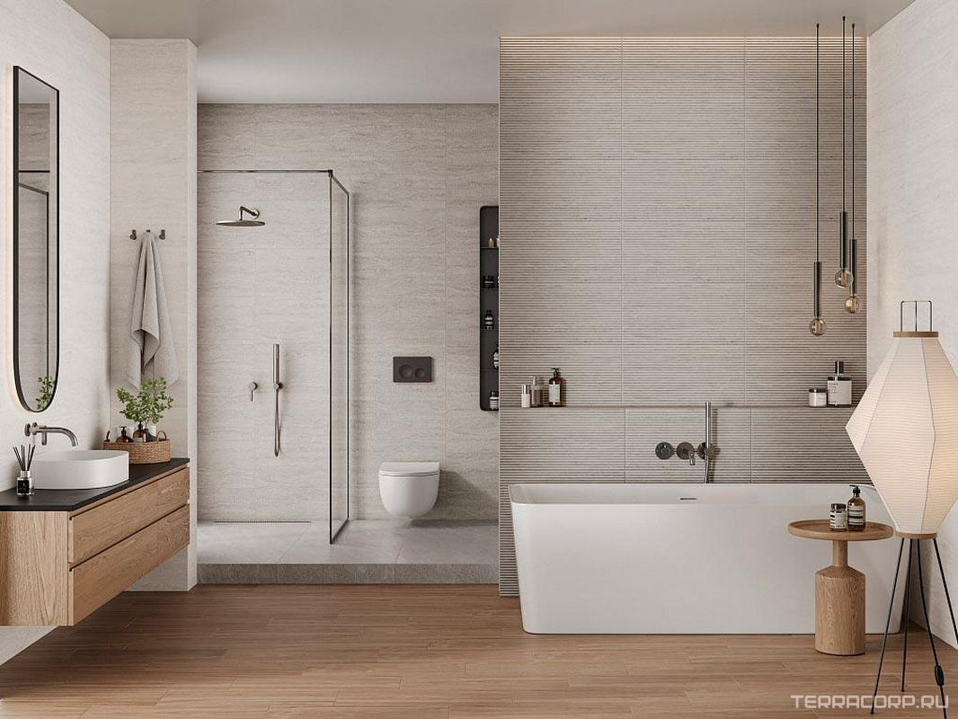 Керамическая плитка Gracia ceramica Исаму Травертин сер верх 01 30x60 Серый