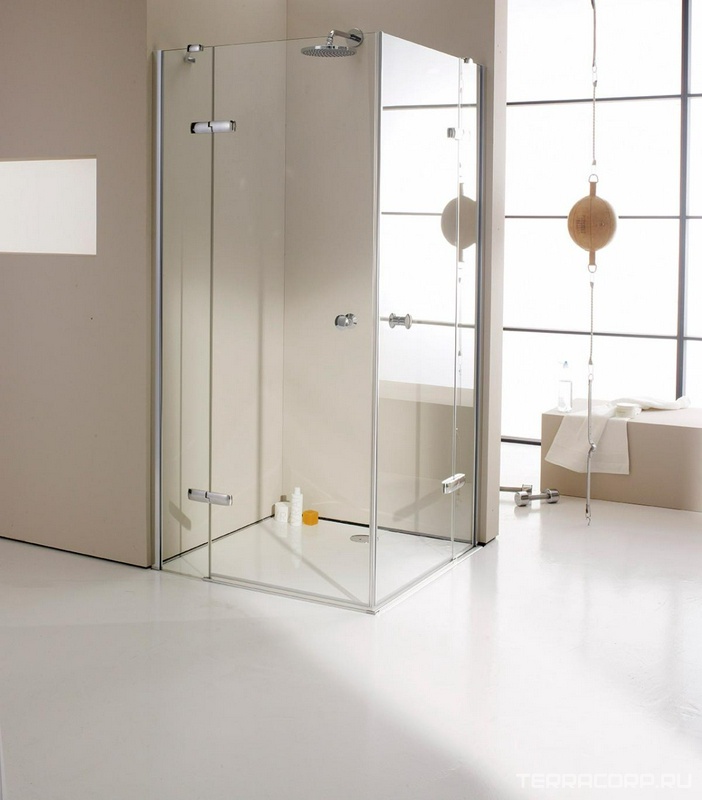 Дверь распашн. с 2 неподв.сегм. 100х100хh2000мм, R 500, петли слева, проф/хром, стекло 8/6mm, прозрачн.Anti-Plaque, Huppe Enjoy elegance 1/4 круга ZZ