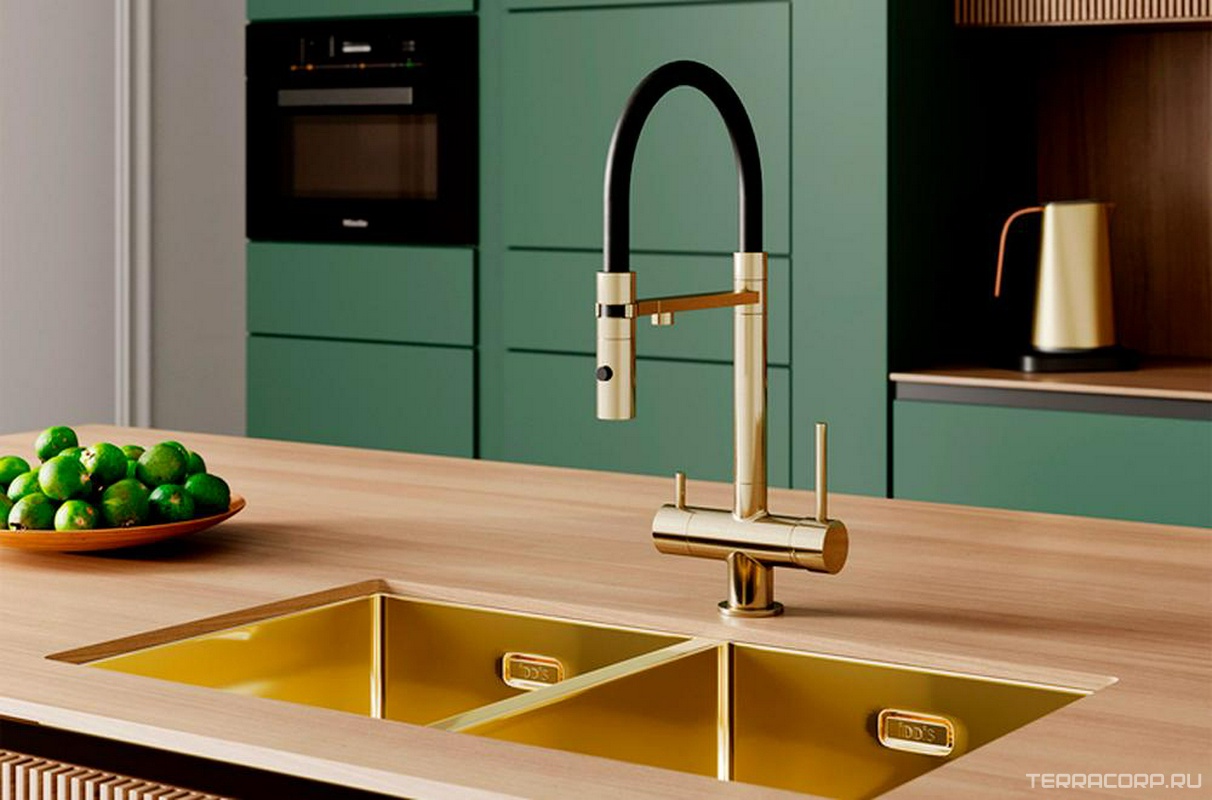 Смеситель для кухни Ace ACEMGFFi05, гибкий излив, доп фильтр д/питьев.воды, магнитный замок, цв. черный / золото, ZZ