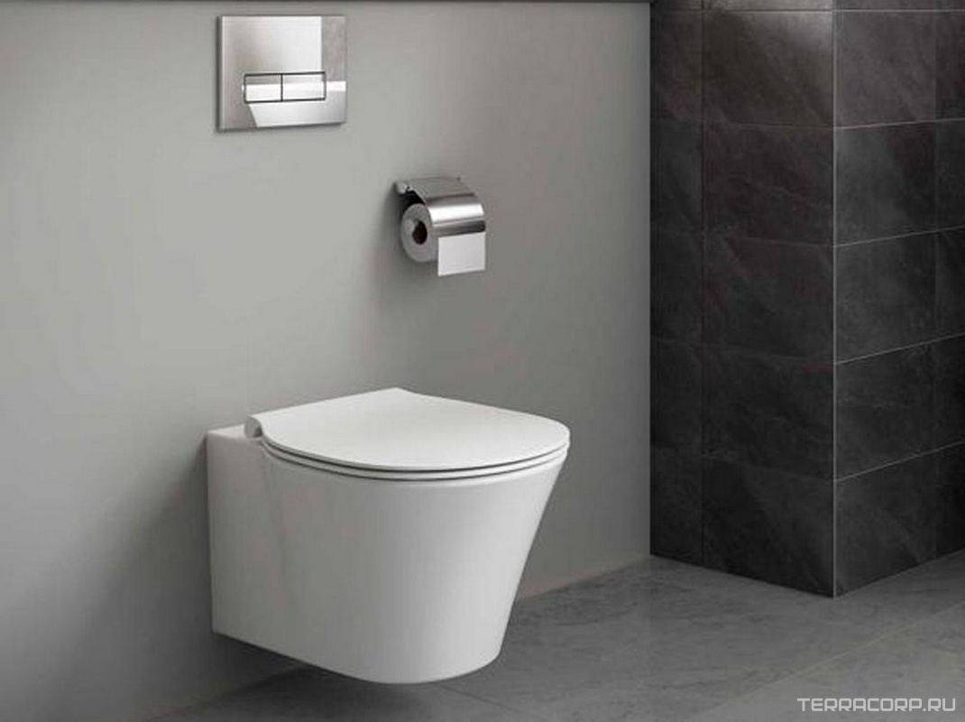 Комплект: унитаз подвесной, безободковый, сиденье с микролифт, монтажная рама с клавишей смыва цв.хром, CONNECT AIR AquaBlade® ZZ