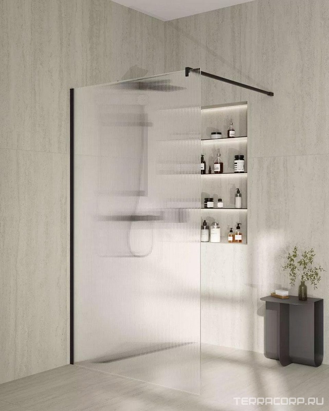 Душевая перегородка 100*h210, рифленное стекло, профиль матовый черный