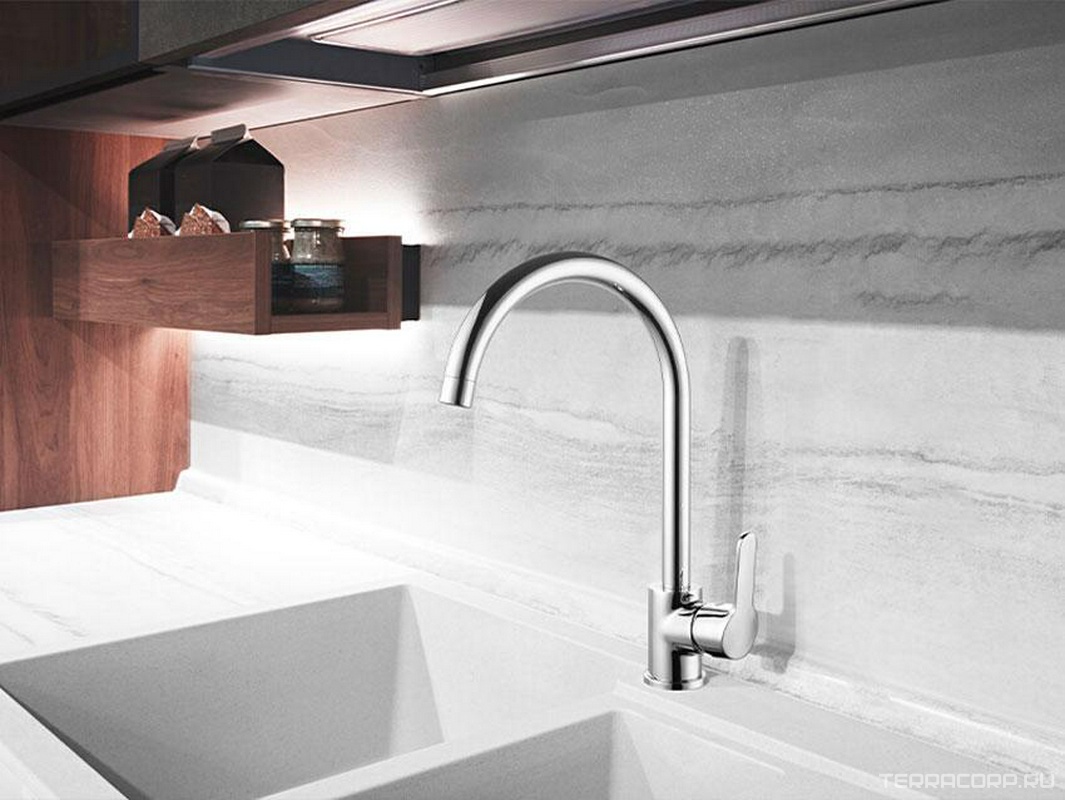Смеситель для кухни, с поворотным изливом, (цв.хром), 104 ZZ Смеситель для кухни, с поворотным изливом, (цв.хром), 104 ZZ