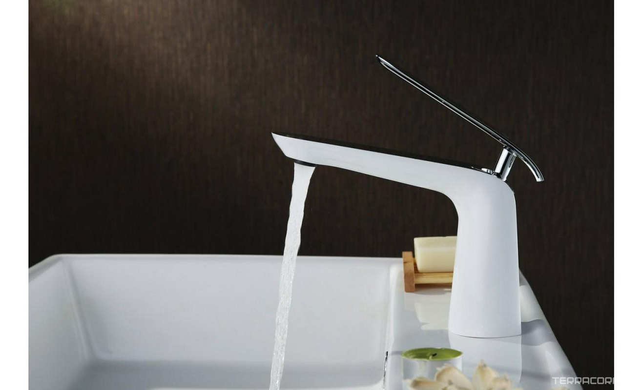 Смеситель для умывальника, высокий, без донного клапана, цв. белый/хром ZZ