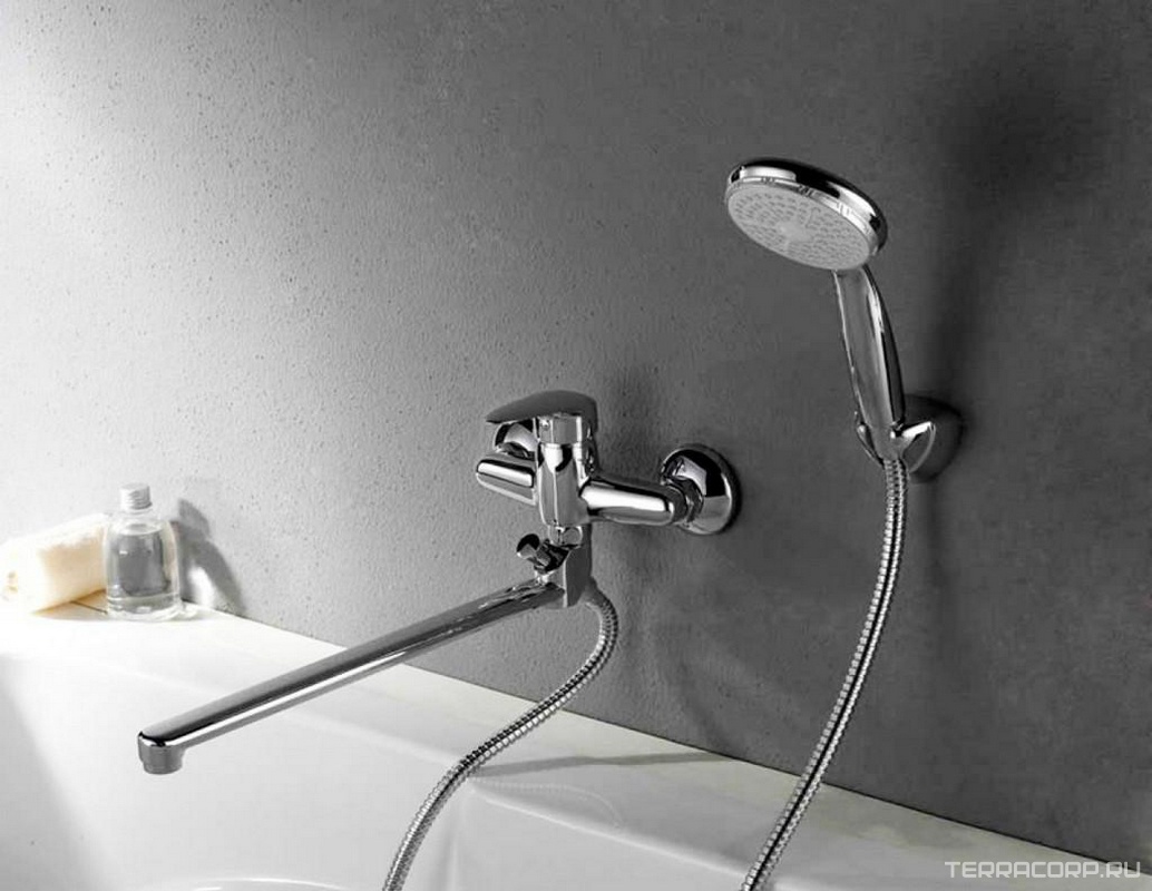 Смеситель для ванны/душа, длинный излив 300 мм, с установочным комплектом и аксессуарами, хром ZZ