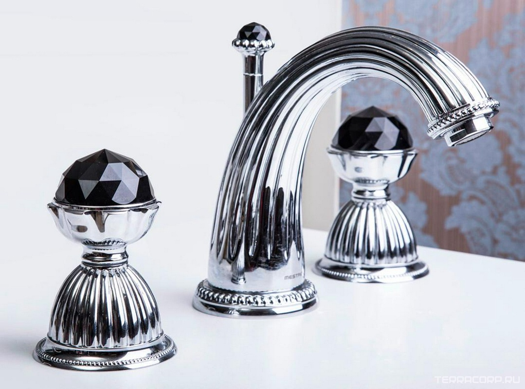 Смеситель для биде на 1 отв. с д/к, (цв.хром/ручки black Swarovski cristal), Artica ZZ Смеситель для биде на 1 отв. с д/к, (цв.хром/ручки black Swarovski cristal), Artica ZZ