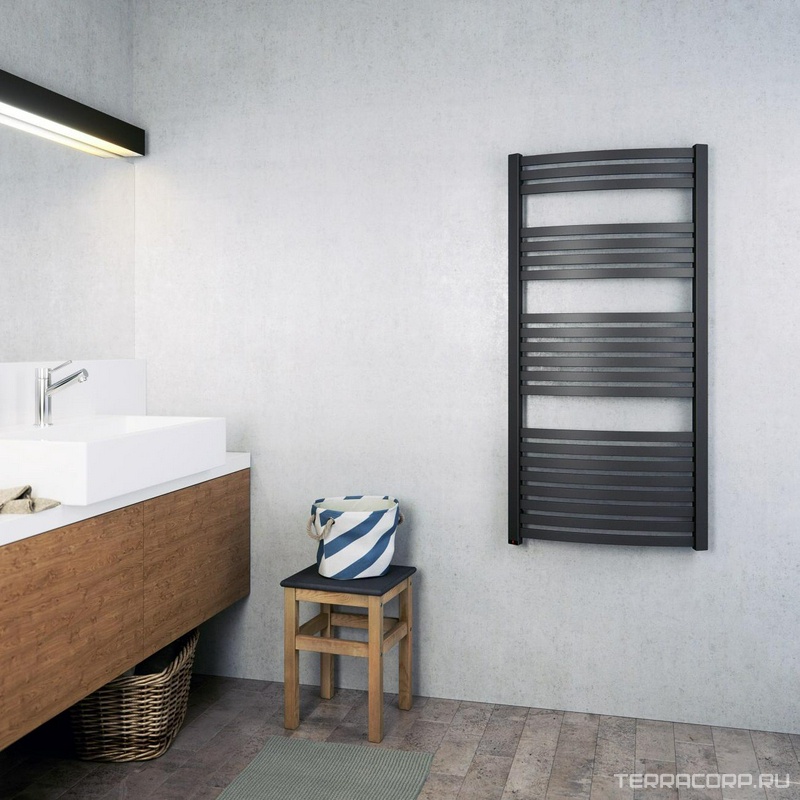 Полотенцесушитель "ЛМ-6" Modern 1000*500 мм, подключение 1"*3/4, установочный набор и запорный вентиль в комплекте, цв.черный матовый ZZ