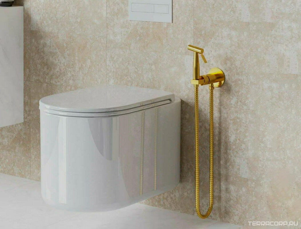 Смеситель совмещён. с гигиеническим душем, (готовый комплект: лейка, шланг, скрытая часть), (цв.браш. золото PVD), Castello Round ZZ