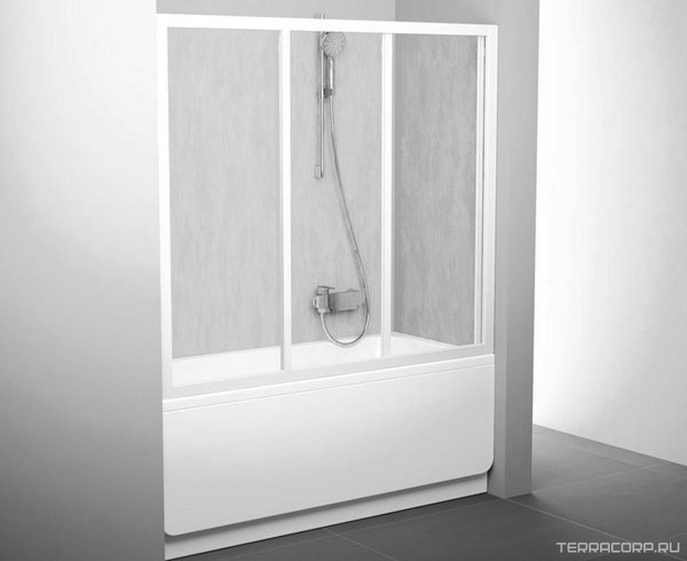 Шторка для ванны AVDP3-160, трехэлементная, раздвижная, профиль сатин, стекло прозрачное ZZ