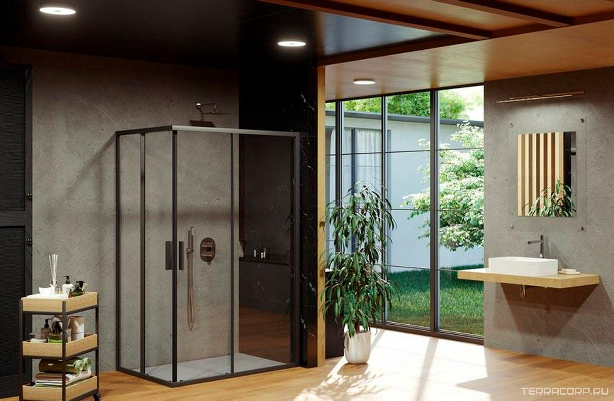 Душевая дверь, раздвижная, (1/2 душ угла), 120*120*195 см, профиль-черный, стекло-прозрачное, ZZ
