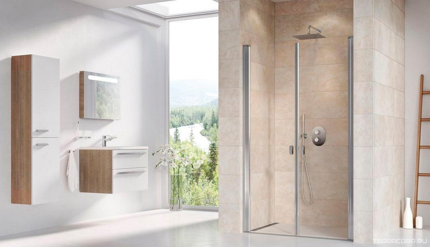 Двери для душа распашные, CSDL2-120, 2-х элементные, профиль блестящий хром, стекло прозрачное ZZ