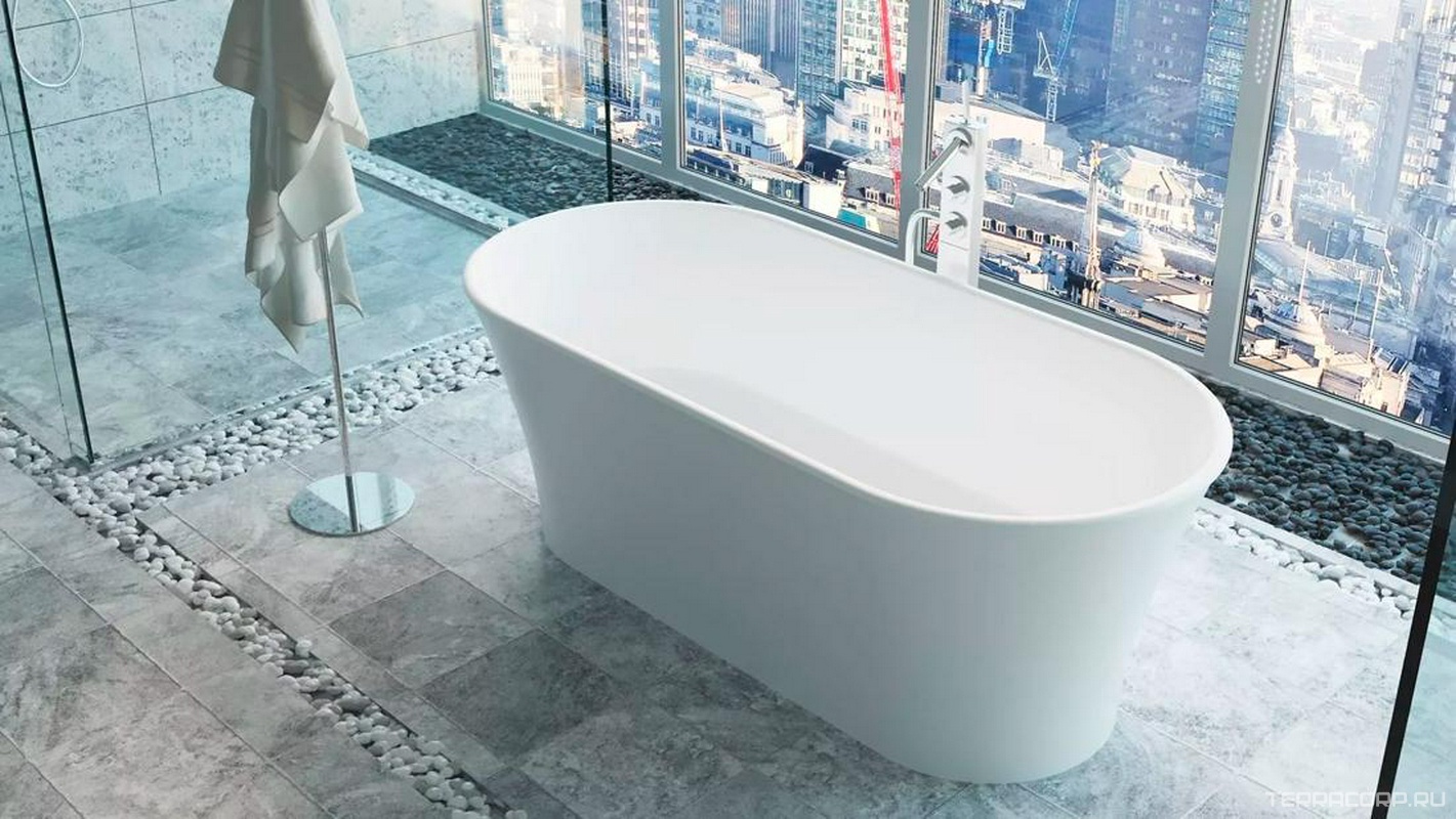 Ванна 1775х830хh650мм, отдельност., литой природный камень Sapirit, матовая, регулир.опоры, донный клапан цв.хром в компл., Zoe XXZZ