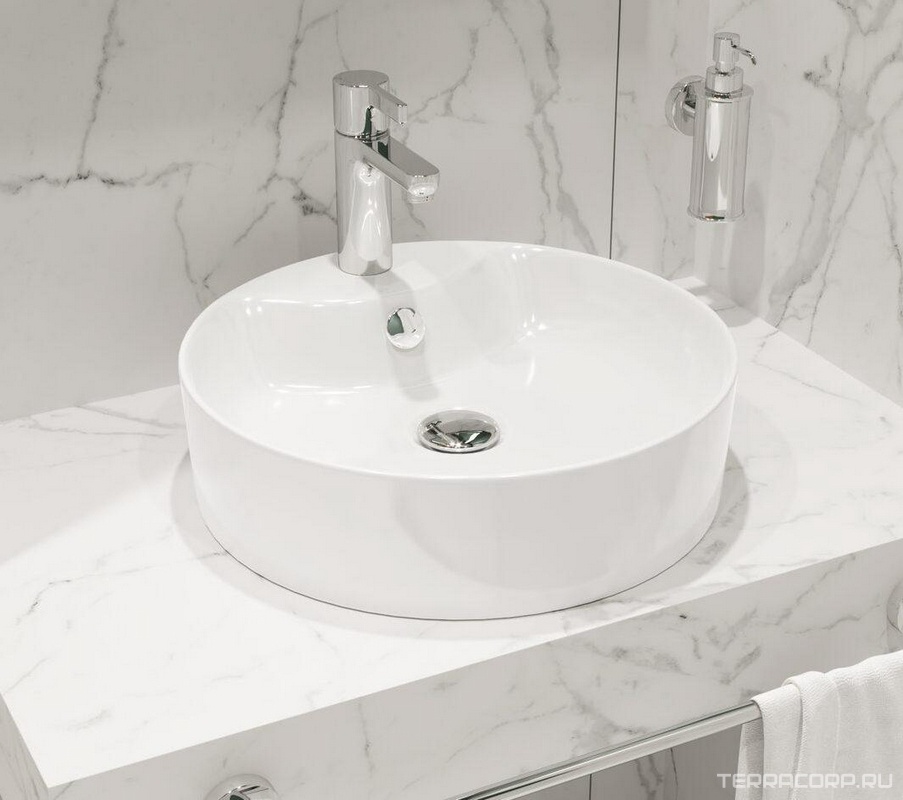 Раковина-чаша накладная Best Shelf 43х43х12, с отверстием прод смеситель, белая