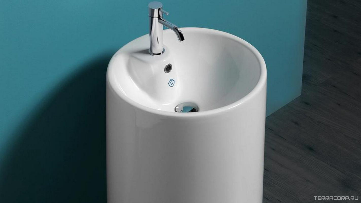 Раковина d460хh835мм, напольная, круглая, с 1 отверстием д/смесит., выбитым вручную!!!, с переливом, GTE ZZ