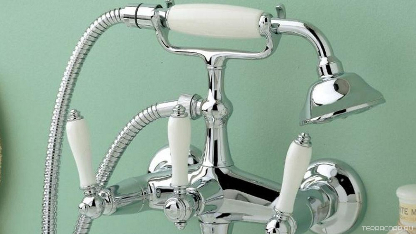 Смеситель для ванны с душ.гарнитуром + кронштейн (цв. хром, ручки цв. белый) Fantastica XX