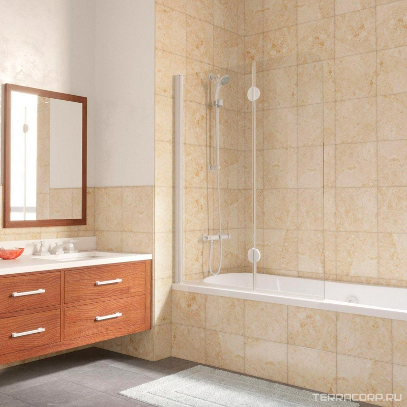 Ограждение на ванну двухстворчатое, с неподвижным сегментом 115*150 см, лев, глянцевый хром, стекло прозрачное, ПОКРЫТИЕ BriteGuard, ZZ