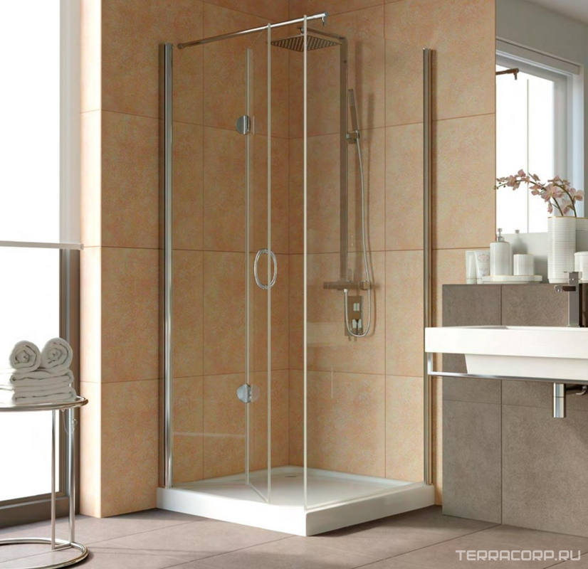 Душевое ограждение GPS-Fis, 90*90 см, дверь складная, духсекционная, правое, профиль хром глянец, стекло сатин с покрытием QuickNano ZZ
