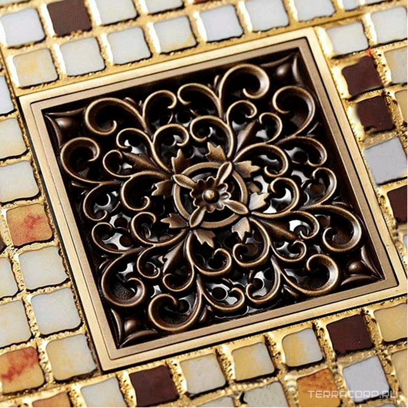 Трап сливной CANYON d40, с декоративной решеткой 120х120 мм, с мех-м обратным клапаном, бронза XX Трап сливной CANYON d40, с декоративной решеткой 120х120 мм, с мех-м обратным клапаном, бронза XX