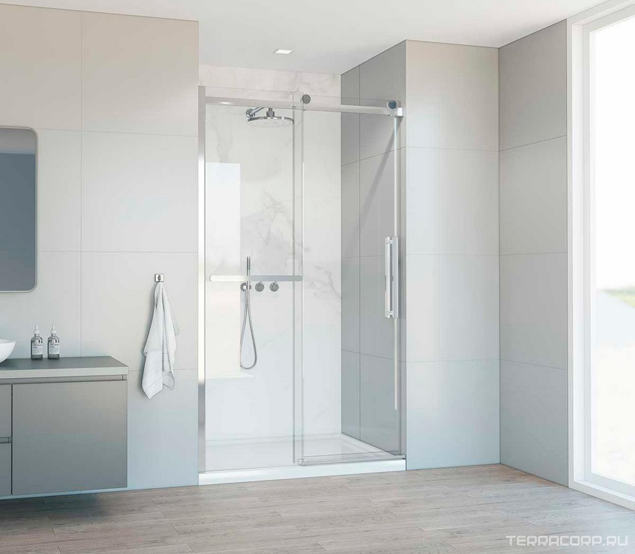 Дверь для душа, в нишу 1100хh1900мм, раздвижная, 1 дверь, 1 неподв.секция, правая/левая, (стекло прозрачное 8мм Easy Clean, фурн.цв.хром),Como Soft ZZ