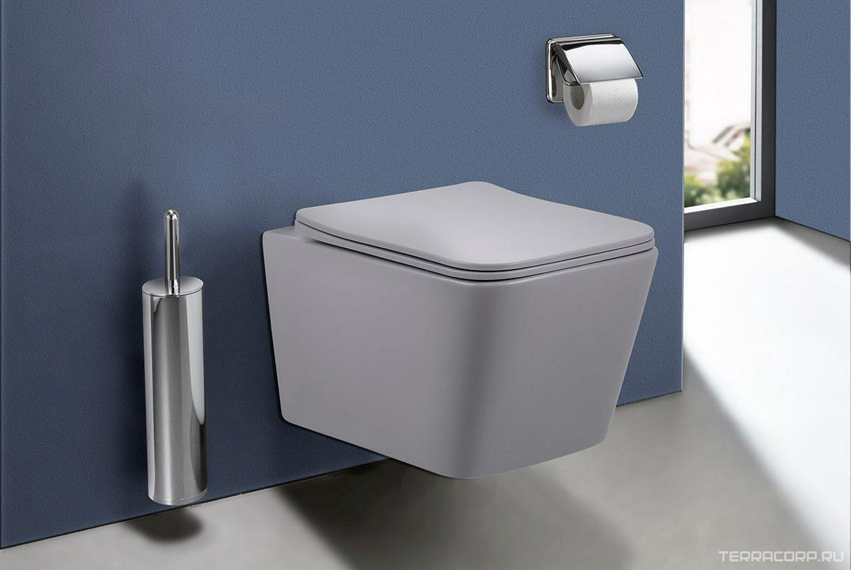 Унитаз подвесной, безободковый, 520х360х350мм, сиденье ультратонкое с микролифтом, крепеж в компл., (цв.серый матовый), Q-Line ZZ