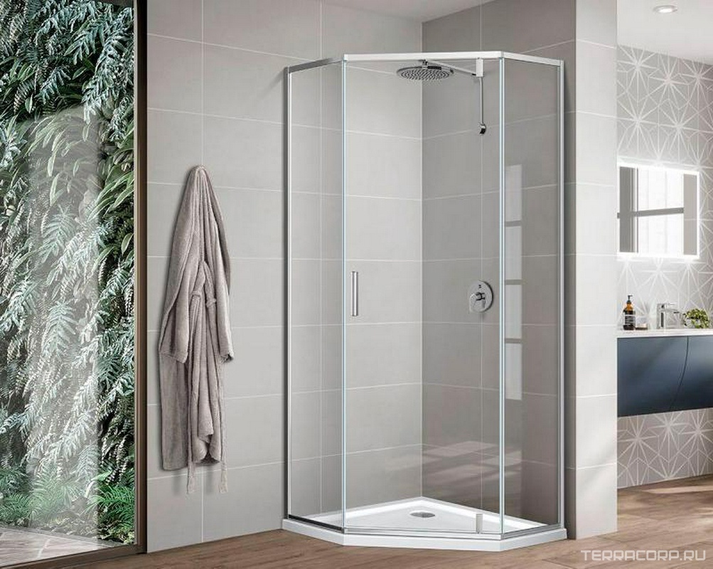 Душевой уголок 900х900хh2000мм, 5-ти угольный, распашная дверь правая/левая, с 2 неподвижн. сегмент, (стекло прозр.6мм, фурнит. цв.хром), Slim-U ZZ