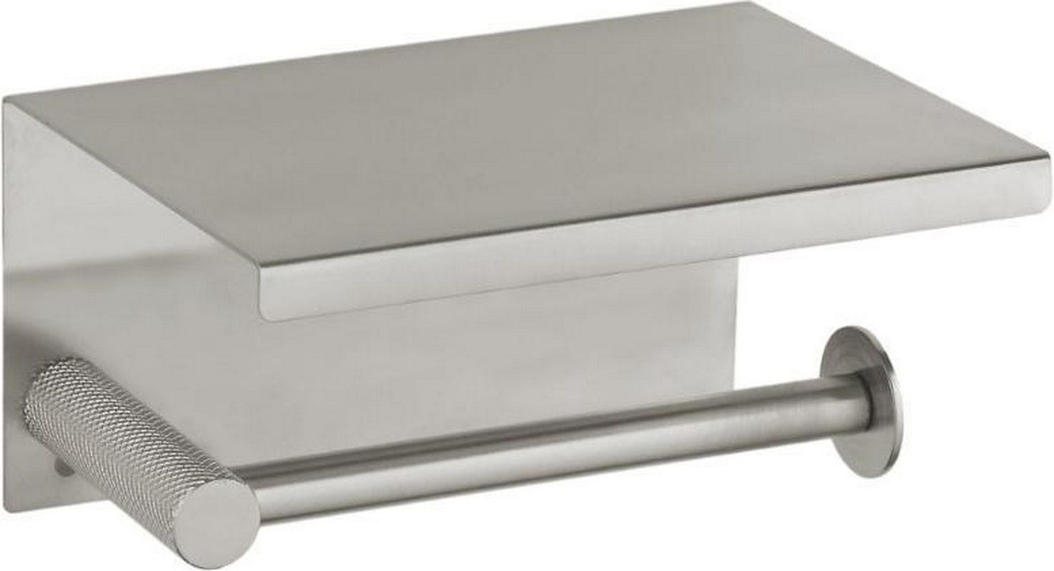 Держатель для туалетной бумаги UNO Nikel Brush, с полкой для телефона, крепеж в комплекте, брашированнная сталь, ZZ