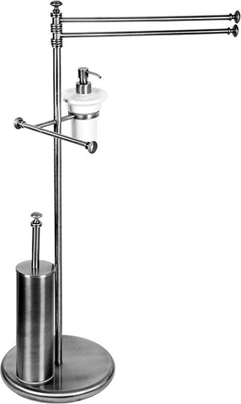 Стойка напольная с двойным полотенцедержателем, керамическим дозатором, держат. т/б и ёршиком (цв.хром/керамика) Harmony ZZ