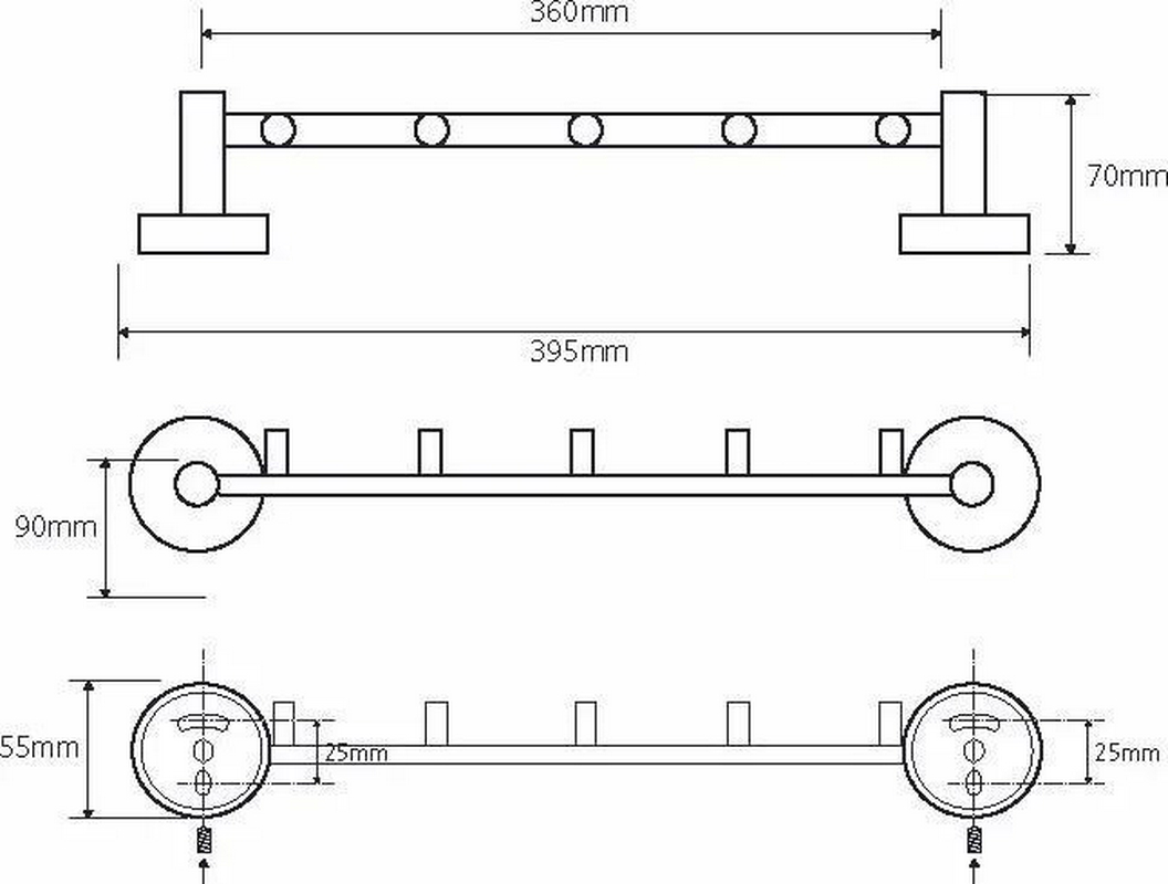 Крючок (планка с 5 крючками), (цв.хром), Omega ZZ