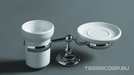Мыльница двоная настенная, керамическая + решетка (цв. хром / керамика) Victoria XX