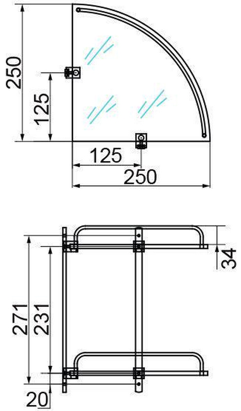 Полка угловая двойная 30x26,3x26,3 см. стекло матовое, бронза ZZ