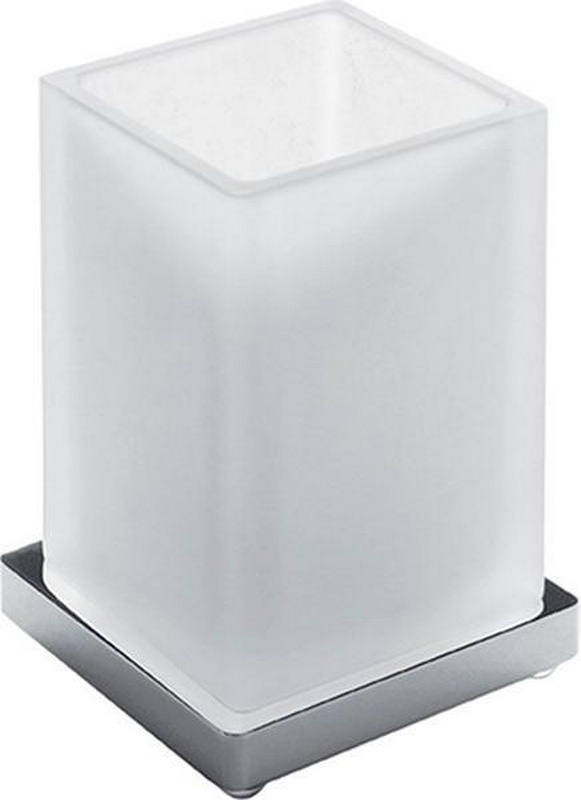 Стакан настольный, (корпус мелалл хром, вставка стекло матовое), Look