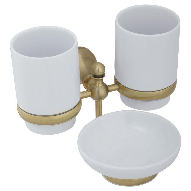 Стакан двойной настенный с мыльницей, керамика/бронза ZZ