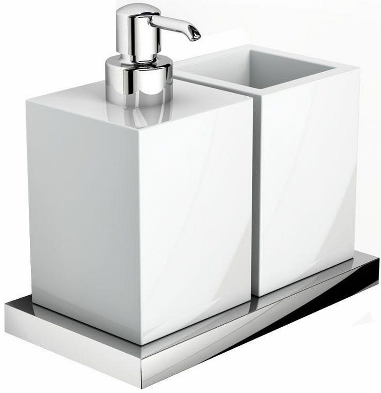 Стакан и дозатор настольные на мелалл.подставке, (цв.хром, керамика), Xoni ZZ