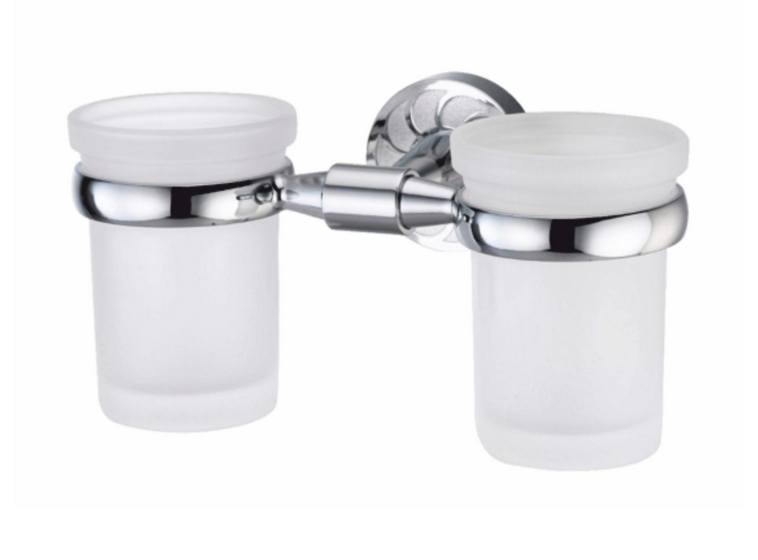 Стакан двойной для зубных щеток, настенный, (цв.хром / матовое стекло), Omega ZZ