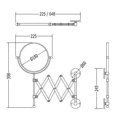 Зеркало косметическое раздвижное (цв. хром, креп/компл.), Cavendish ZZ