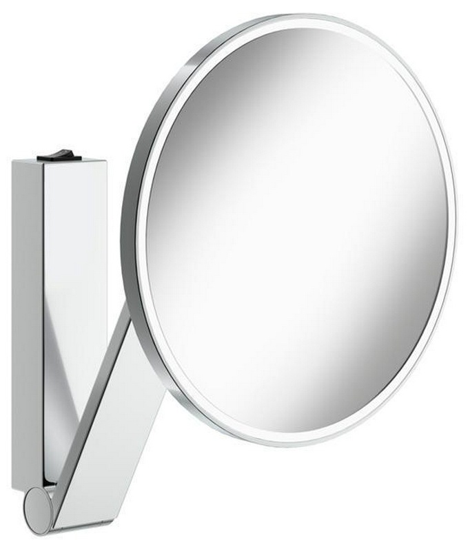 Зеркало косметическое 212х212мм, кругое, на кронштейне с шарниром, с подсветкой, кнопочный выключатель, увеличение х5, (цв.хром), iLook move ZZ