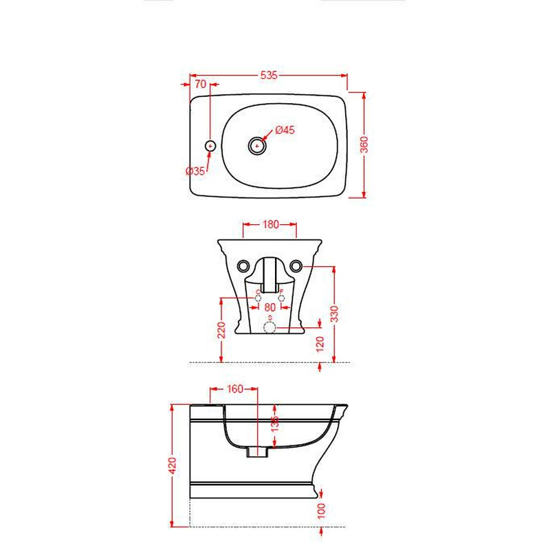 Биде подвесное 36х54см, крепёж в компл., (цв.grey), Civitas ZZ