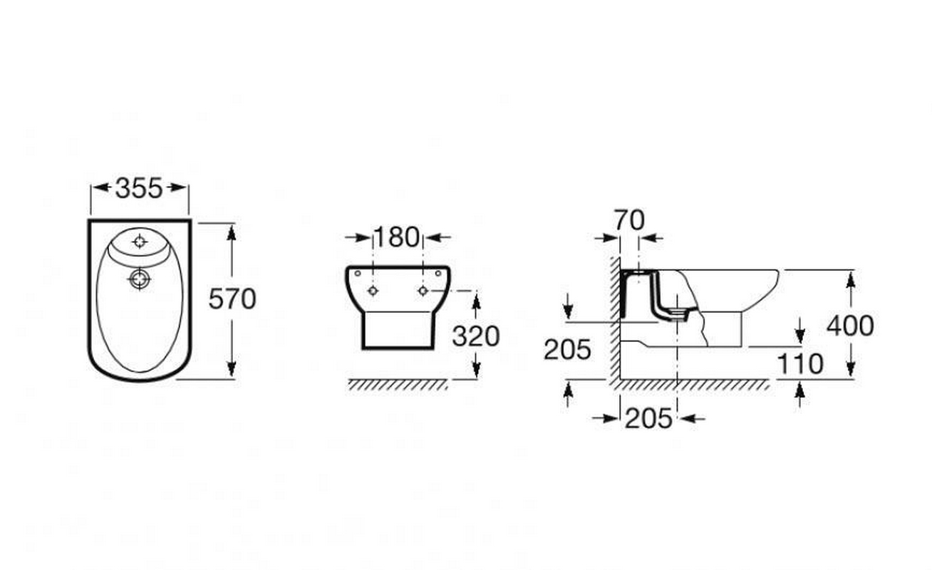 Биде подвесное Roca Dama Senso 357515000| 35x29x57